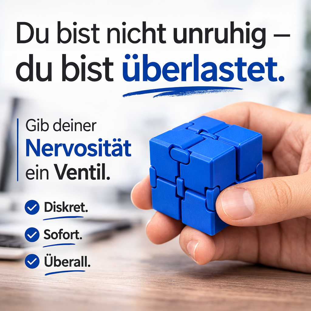Viele Menschen bauen Stress unbewusst über ihre Hände ab: Stift klicken, Nägelkauen, nervöses Zappeln. Der FokusCube gibt dieser inneren Anspannung eine gezielte, beruhigende Bewegung.